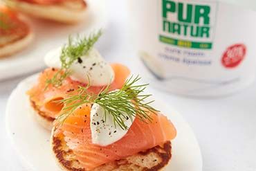 Blinis with sour cream and smoked salmon