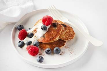 Oat Bran Pancakes with Blueberries and Raspberries