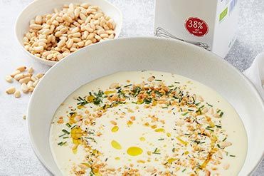 Spinach soup with Greek style yoghurt