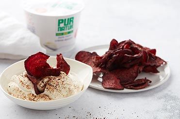 Beetroot crisps with sour cream