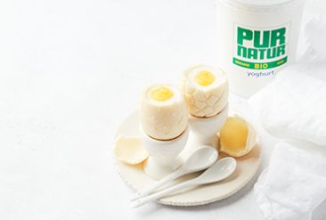 Stuffed Easter Eggs with yoghurt and mango coulis