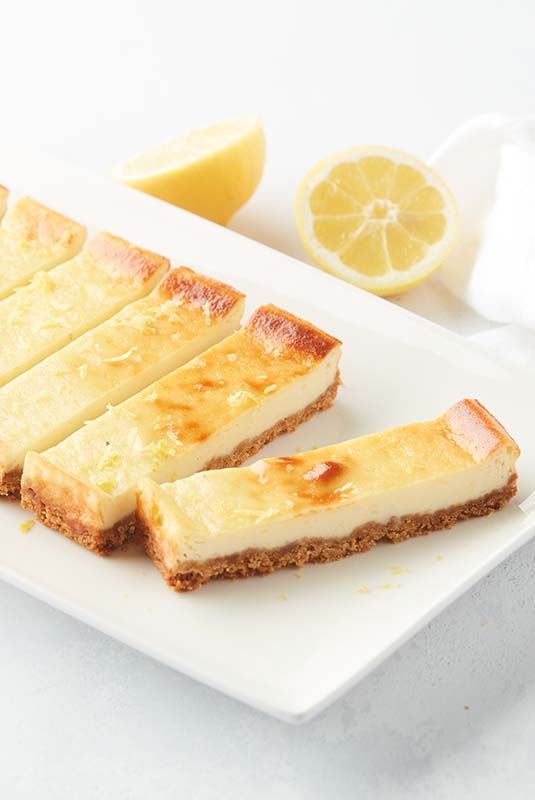 Pour the filling over the slightly cooled baked biscuit crust, smoothing the top with a spatula. Bake for another 25-30 minutes. Set aside for 3 hours to firm up before cutting into bars.