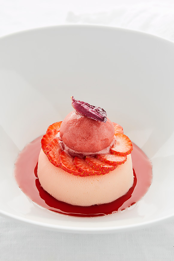 Mix ‘ciflorette’ strawberries with a few rose petals, a little sugar and lemon zest in a mixing bowl. Cover the mixing bowl with cling film and place on top of a pot of simmering water for three hours. Sieve and set aside to cool down. Blend a little cold champagne into the coulis just before serving.