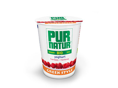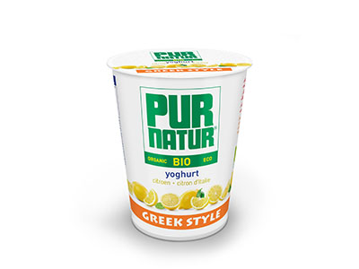 Le yaourt Greek style Pur Natur est disponible version nature ou aux fruits.