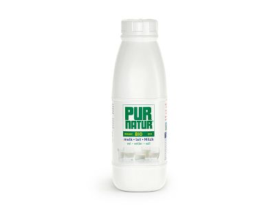 Biologische volle melk UHT in een 1L fles.